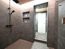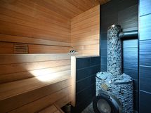- Varusteet: puukiuas, lattialämmitys, LED-valaistus, ikkuna ulos. Uusittu 2020, puukiuas, saunan lauteet puuta. Seinämateriaali: paneeliseinä. Lattiamateriaali: laattalattia