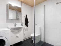- Pesutilojen varusteet: WC-istuin, suihku, suihkuseinä, pesukoneliitäntä, peilikaappi, allaskaappi ja lattialämmitys.