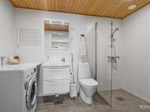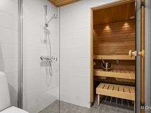 - Pesutilojen varusteet: WC-istuin, suihku, suihkuseinä, lattialämmitys, peilikaappi, pesuallas, allaskaappi ja bidee-suihku. Erillisten WC:n lukumäärä: 1. Erillisen WC:n varusteet: WC-istuin, suihku, suihkuseinä, pesukoneliitäntä, lattialämmitys, pesuallas, peilikaappi, allaskaappi, bidee-suihku ja lattiakaivo.