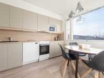 - Varusteet: jääkaappipakastin. Työtaso: laminaattitaso. Liesi: keraaminen liesi, liesituuletin hormilla