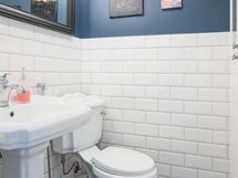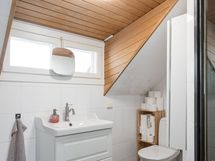 - Pesutilojen varusteet: WC-istuin, suihku, lattialämmitys ja allaskaappi. Erillisten WC:n lukumäärä: 1. Erillisen WC:n varusteet: WC-istuin, peili, pesuallas ja bidee-suihku.