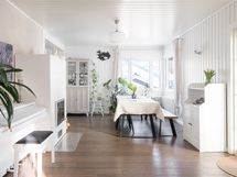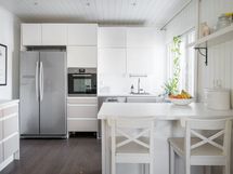 - Keittiön varusteet: Jääkaappipakastin, uuni, liesi, liesituuletin ja astianpesukone. Liesi: Induktioliesi.