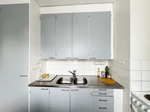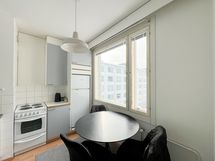 Tilavassa huoneessa on alkovi sisustamista helpottamassa. Lasitettu länteen suuntaava parveke tuo lisää tilaa kesäkuukausina ja näkymät ovat viihtyisälle sisäpihalle. Kodikkaassa keittiössä on tilaa pienelle ruokapöydälle, sekä iso ikkuna valoa tuomassa.