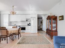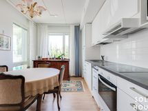 - Keittiön varusteet: Jääkaappipakastin, liesituuletin (suodatin), astianpesukone, uuni ja liesi. Liesi: Keraaminen liesi. Työtason materiaali: Laminaatti.