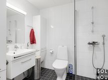 - Pesutilojen varusteet: WC-istuin, suihku, suihkuseinä, pesukoneliitäntä, lattialämmitys, pesuallas, allaskaappi, peilikaappi ja bidee-suihku.