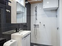 - Pesutilojen varusteet: WC-istuin, suihku, pesukoneliitäntä, peilikaappi ja allaskaappi.