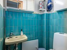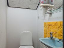 Yläkerran kylpyhuoneessa myös wc-istuin.