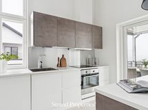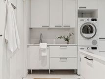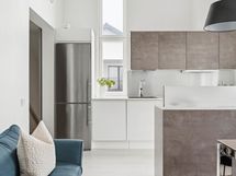 - Kaapistot, saareke ja jääkaappi/pakastin. Electroluxin integroidut kodinkoneet: astianpesukone, induktioliesi, kalusteuuni, mikroaaltouuni ja liesituuletin.