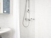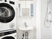 - Pesutilojen kuvaus: Lattialämmitys, suihku, peilikaappi, allas ja hana, pesukoneliitäntä. Erillisten WC:n lukumäärä: 1. Erillisen WC:n kuvaus: Lattialämmitys, peilikaappi, wc-istuin, allaskaappi, bidee, pyyhekuivain.