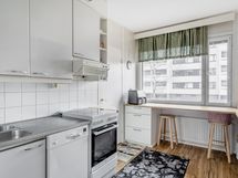 - Keittiön varusteet: Jääkaappipakastin, liesituuletin, astianpesukone, uuni, liesi ja mikroaaltouuni. Liesi: Keraaminen liesi. Työtason materiaali: Bambu. Keittiön lattia ja työtaso uusittu 2022