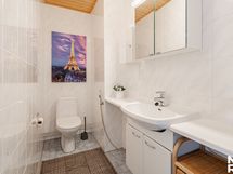 - Varustus: pesukoneliitäntä, lattialämmitys, wc-istuin, suihku, peilikaappi, kylpyhuonekaapisto. Varustus: peilikaappi, bidee-suihku.