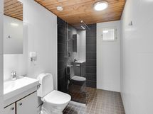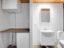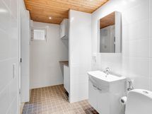 - Alakerran kylpyhuone:peilikaappi, allaskaappi, suihku, suihkuseinä, sähkösauna, pesukoneliitäntä, lattialämmitys. Yläkerran kylpyhuone: peilikaappi, allaskaappi, suihku, suihkuseinä, lattialämmitys. Lattia: laatta. Seinät: laatta
