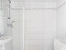 - Pesutilojen varusteet: WC-istuin, suihku, pesukoneliitäntä, peilikaappi, pesuallas ja bidee-suihku. Pesutilojen kuvaus: Lämmitettävä pyyhekuivain.