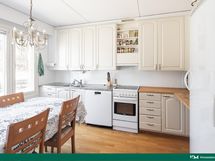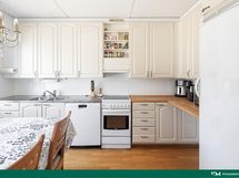 - Jääkaappi, pakastin, keraaminen liesi, astianpesukoneliitäntä, astianpesukone, liesikupu/-tuuletin