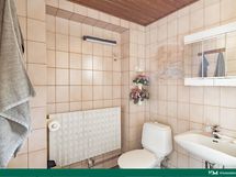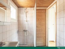 - Erillinen wc: pesukoneliitäntä, peilikaappi, wc-istuin, allas. Kylpyhuone: wc-istuin, allas, peilikaappi, suihku, suihkuseinä, patteri, sauna