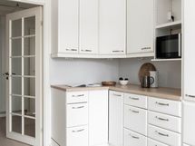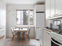 - Liesi: keraaminen, sähköliesi. Työtasot: laminaatti. Kylmäsäilytys: jääkaappi/pakastin. Varustus: astianpesukone.