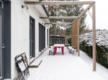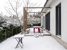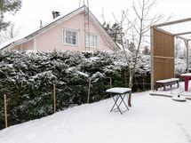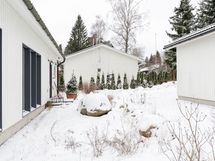 - Sähköliittymä. Muuta kauppaan kuuluvaa: Integroidut kodinkoneet (uuni, liesi, astianpesukone sekä jääkappi/pakastin). Keittiön Domus Classican seinävalaisimet. Mittatilausverhot (pellavaa oh, 1. makuuhuone ja khh). Ison WC:n Svedbergsin peilikaappi. Khh:n peili, seinävalaisin ja puiset koukut. Terassin pöytä ja 2 penkkiä. Biolanin komposti. Kauppaan ei kuulu: Talousrakennuksen jääkaappi. Pihan suuri betoniruukku.