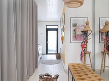 - Kuvaus: Tervaleppäpystypaneelaus seinässä ja katossa, haapalauteet. Kota sähkökiuas (kiukaan kaiteet tallessa). Led-valot katossa ja siivousvalo lauteiden alla. Laude on helppo irrottaa puhdistusta varten, mutta robotti-imuri mahtuu hyvin imuroimaan koko lattian. Lasiovessa Eerik the Happyn Duratista valmistettu saunanovenkahva värissä Gin Daisy eli pinkki. Lattia: laatta.