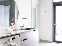 - Pesutilojen kuvaus: Kaksi Oraksen (2024) sadesuihkua käsisuihkuilla. Iittalan Aitio-hylly. Harmaanvihreä seinälaatta tiililadonnalla ja vaalealla saumalla. Lattiassa kivipuristelaatta 10x10 (ABL laatat). Yksityisyyttä antava mutta luonnonvaloa läpi päästävä lasiseinäke ja lasinen liukuovi. Katon rajassa led-valo. Normann Copenhagen Sticks seinäkoukku. Lattialämmitys. Erillisen WC:n kuvaus: Esteetön pääWC: IDO-WC istuin. Moderni, saumaton komposiittiallastaso kulmikkaalla valualtaalla ja rosterijaloilla. Moran hana, Svedbergsin Jenny peilikaappi säilytystilalla. Maali: Tikkurila Paperi pohjana (Lujamaali). Lattia: kivipuristelaatta (ABL-laatat). Lattiakaivo. Lattialämmitys. Katto vedenkestävä MDF-paneeli. Makuuhuoneen WC: IDO-WC-istuin, Svedbergsin allas, Hansgrohen hana, bideesuihku Oras (2025), käsintehdyt seinälaatat. Maali seinissä: Tikkurila Toro (Lujamaali). Lattia: valkoinen pennimosaiikki laatoitus. Lattiakaivo. Lattialämmitys. Tontilla olleen 1927 rakennetun pihasaunan tiilet seinänä. Katto: Halltex. .