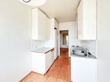 - Astianpesukoneliitäntä, jääkaappi-pakastin, sähköliesi. Keittiötilat: Keittiö