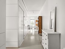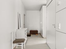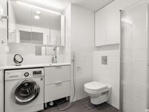 - Pesutilojen varusteet: WC-istuin, suihku, pesukoneliitäntä, lattialämmitys, peilikaappi, allaskaappi ja bidee-suihku.