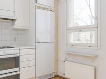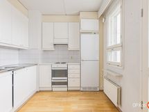 - Keittiön varusteisiin kuuluu ääkaappipakastin, sähköliesi, liesikupu, kaapistot sekä kiinteät valaisimet.