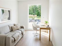 Upea Puustellin saarekkeellinen avokeittiö yhdistyy ruokailutilan jatkeena olevaan olohuoneeseen. Ruokailutilaan saat isonkin ruokapöydän. Olohuoneesta astut länsisuuntaiselle terassille jossa kesällä viihtyy grillaillen ja auringon laskusta nauttien. Pienemmän makuuhuoneen voi halutessaan myös jättää rakentamatta jolloin oleskelutilat laajenevat nykyisestä suunnitelmasta.