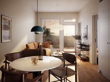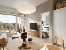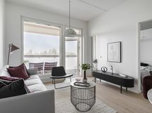 Tämä viidennen kerroksen valoisa ja viihtyisä kaksio tarjoaa modernia asumismukavuutta sekä koko huoneiston levyisen, tilavan parvekkeen, jonne mahtuvat niin aamiaispöytä kuin kukkalaaritkin. Avokeittiön ja olohuoneen yhdistelmä muodostaa kodin sydämen, jossa on helppo viihtyä. Makuuhuone on rauhallisesti sijoittunut ja tarjoaa erinomaiset säilytystilat. Tyylikkäässä kylpyhuoneessa on paikka pyykinpesukoneelle, ja koko asunnossa kiertävä vesikiertoinen lattialämmitys lisää sekä asumisen laatua, että sisustamisen vapautta.