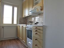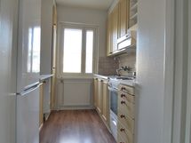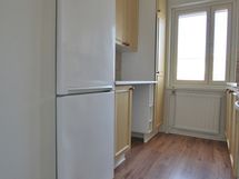- Maalatut seinäpinnat, laminaattilattia. Varusteina jääkaappi/pakastin, sähköliesi ja liesituuletin.