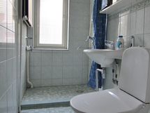 - Pesutilojen kuvaus: Kaakeloidut seinät, laattalattia. Wc-toiminnot samassa tilassa. Varustus; suihku, peilikaappi, pesukoneliitäntä.