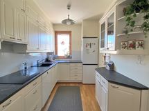 - Vaalea 2000-luvulla uusittu keittiö, jossa hyvin kaapistoja. Kodinkoneista induktioliesi, kylmälaite, erillisuuni, välitila ja työtasot uusittu v. 2022. Varusteena jääkaappi/pakastin, astianpesukone, erillisuuni, induktioliesi. Lattia parkettia, seinät maalia.
