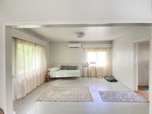 Olohuone: // Lattia: lauta // Seinät: levy // Katto: paneeli // Olohuoneessa ilmalämpöpumppu ( 2020 )