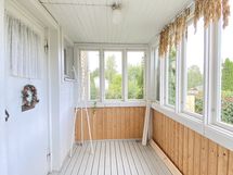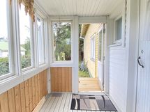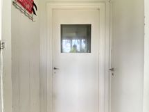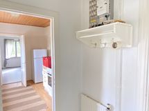 Sisääntulokuisti: // Lattia: lauta // Seinät: pystypaneelin // Katto: paneeli // Tuulikaappi: // Lattia: laminaatti // Seinät: lauta // Katto: pinkopahvi. Tuulikaapista ovi toiseen kerrokseen. Eteinen: // Lattia: levy // Seinät: pinkopahvi // Katto: pinkopahvi // Eteisessä varusteena naulakko, sähkömittari sekä sulakeutaulu jossa normi sulakkeet. Ruokailutila: // Lattia: lauta // Seinät: pinkopahvi // Katto: paneeli //