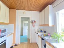 Keittiö: // Lattia: // Seinät: pinkopahvi // Katto: paneeli //