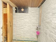 Kuvaus: Sauna: // Lattia: betoni // Seinät: vaakapaneeli // Katto: paneeli //