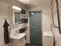 Viisi vuotta sitten tilavassa kylpyhuoneessa tehty täydellinen remontti, jossa kosteat tilat laatoitettu, uusittu kalusteet ja valaistukset sekä lisätty lattialämmitys.