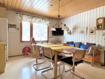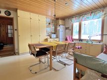 - Keittiötä remontoitu 1980-luvulla, jolloin takakuisti laajennettu keittiötilaksi. Kaapistot uusittu 1980-luvulla. Lattia muovimattoa, seinät paneelia. Varusteena jääkaappi/pakastin, astianpesukone, sähköliesi, liesituuletin (aktiivihiili)