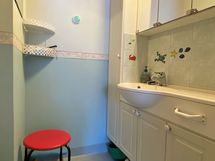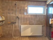 - Pesutilojen kuvaus: Tilava ikkunallinen kylpyhuone. Lattia ja seinät laattaa. Varusteena suihku, pyykinpesukoneliitäntä. Tilassa patterilämmitys. Erillisen WC:n kuvaus: Yksi wc. Seinät maalattu (lasikuitutapetti), lattia muovimattoa.