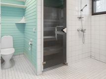 Sauna, sähkökiuas, kylpyhuone, erillinen wc, suihku, peilit, allaskaappi, pesukoneliitäntä khh, lattialämmitys, kiinteät valaisimet.