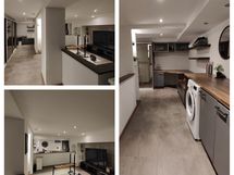 - Suuri tiskipöytä, Laminaattitasot, Astianpesukone, Pesukoneliitos, Liesi tai uuni erikseen, Induktioliesi, Liesituuletin, Jääkaappi, Pakastin