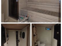 - Suihku, Pesukone, Pesukonevalmius, Peilikaappi, Laattalattia, Laattaseinä, Allaskaappi, Avattava ikkuna, Lattialämmitys