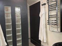 - Kylpyhuone, pesuhuone ( yhteensä 3 kpl), erillinen wc 4 kpl, peilit, pesukoneliitäntä, lattialämmitys, kylpyhuonekaapisto, kiinteät valaisimet, sähkösauna hetivalmis kiuas, ulkosuihku