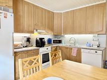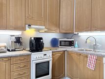 - Osin tapetoidut, osin maalatut seinäpinnat. Parkettilattia. Puukuvioiset, pinnoitetut kaapistojen ovet. Varusteina: jääkaappi (2012), pakastin (2024), keraaminen liesi, liesituuletin (koneellisen poiston ohjaus) ja astianpesukone.
