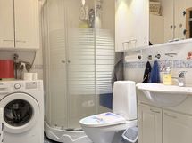- Pesutilojen kuvaus: Vuonna 2005 remontoitu kylpyhuone, jossa kaakeloidut seinät ja laatoitettu lattia. Lattialämmitys (sähköinen). Varusteina: suihkuallas ja suihkuseinät. Allas, allaskaappi ja peilikaappi altaan yllä. Pk-liitin. Runsaasti kaapistoja/säilytystilaa. Pyyhekuivain. WC-toiminnot samassa tilassa. Erillisen WC:n kuvaus: WC-toiminnot kylpyhuoneen yhteydessä.