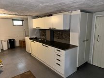 - Kaapistot, jääkaappi, pakastin, induktioliesi , kiertoilmauuni (2019), astianpesukoneliitäntä, astianpesukone, liesituuletin/ aktiivihiilisuodatin. Lattia: Laminaatti. Seinät: Maalattu, tapetti