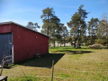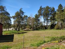 Pihapiiri on iso ja vehreä, ja ulkorakennus tarjoaa monipuoliset mahdollisuudet esimerkiksi varastointiin, työtilaksi sekä eläinten pitoon. Rakennuksen takana on tällä hetkellä laidunalue. Tontilta avautuu kaunis peltomaisema.