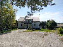 Tilava omakotitalo sekä iso ulkorakennus maaseudulla