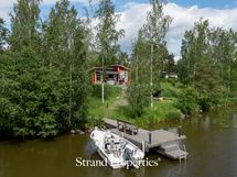 Rantasaunan rannassa on upea laituri, johon voi tulla isommallakin veneellä. Rantaviivaa on kaikkiaan huikeat 120m ja maisema on mitä kaunein. Tämä kokonaisuus takaa hyvät hetket rentoutumiselle ja asumiselle.