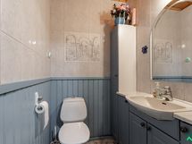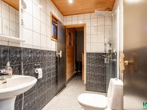 Kylpyhuone, erillinen wc, sauna, pesukoneliitäntä, lattialämmitys, peilit, suihku, kiinteät valaisimet