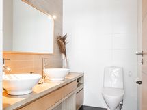 - Pesutilojen varusteet: Suihku ja wc-istuin. Erillisten WC:n lukumäärä: 1. Erillisen WC:n varusteet: WC-istuin, peili ja pesuallas.